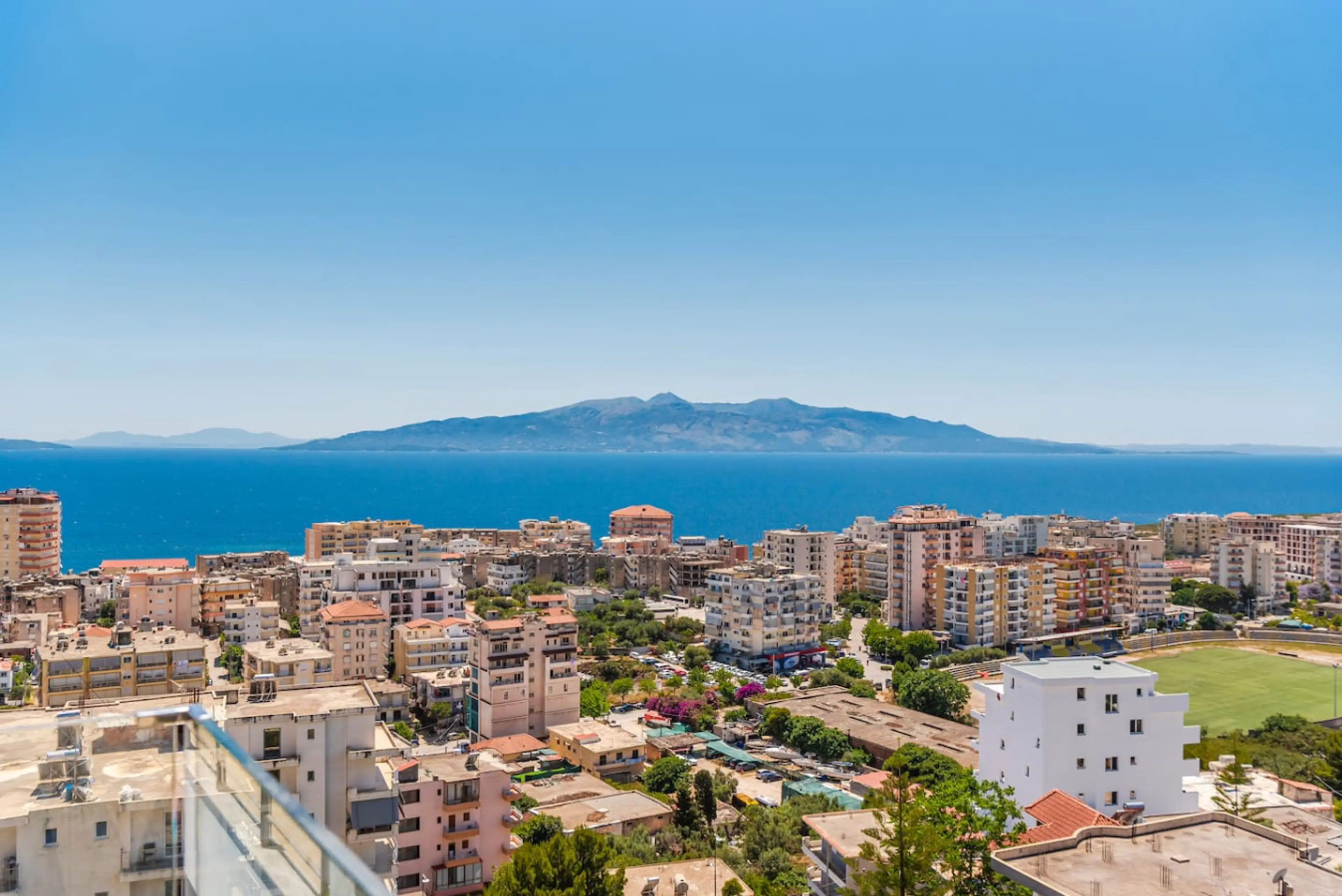 Welcome to Blue Horizon Apartment - Balcony & Seaview by PikHost! Experience this modern 1-bedroom apartment in the heart of Sarandë, perfect for up to 3 guests. With an open-plan layout, air conditioning, Wi-Fi, smart TV, and a fully equipped kitchen, the apartment offers comfort and convenience f...